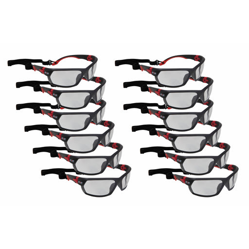 View full detailsPremium Anti-Fog Clear Lens Safety Glasses with Removeable Headband in Black and Red 12-Pair Bulk Pack